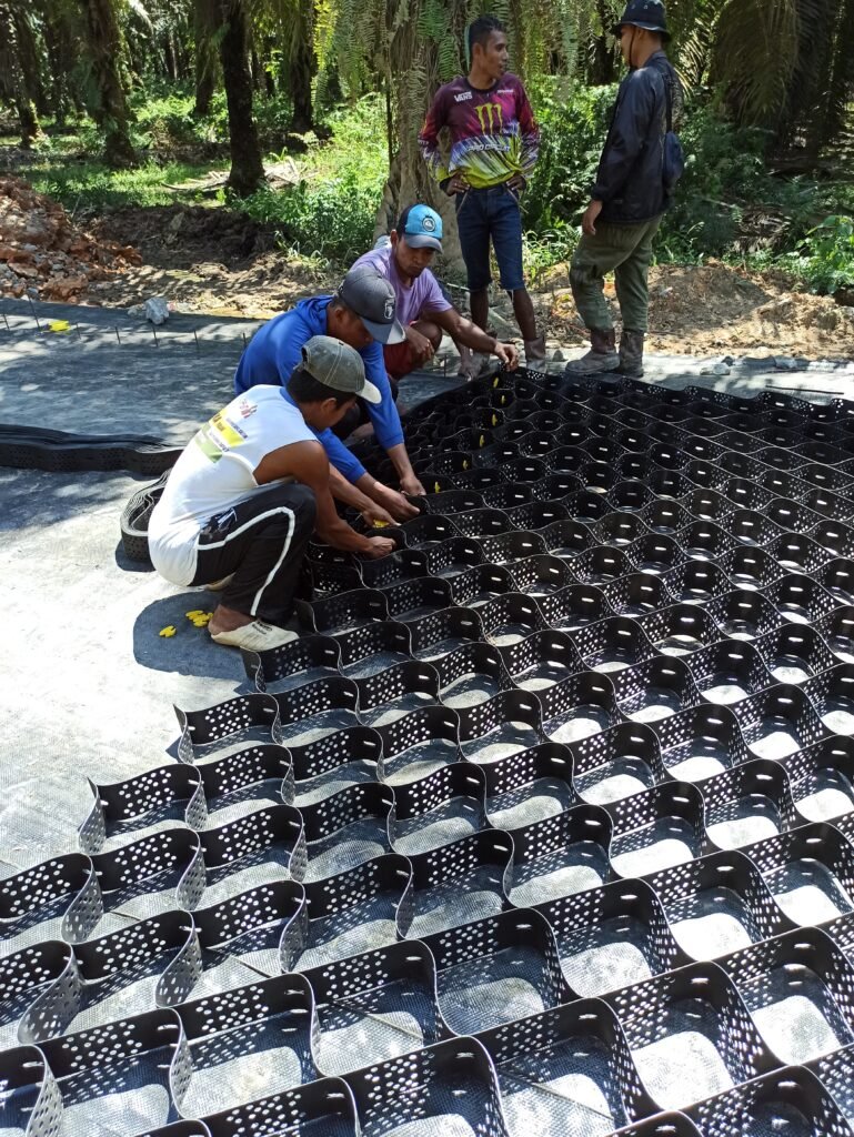 Pada lahan gambut dalam, geocell menjadi solusi agresif yang jauh lebih ekonomis dibanding perbaikan rutin.
